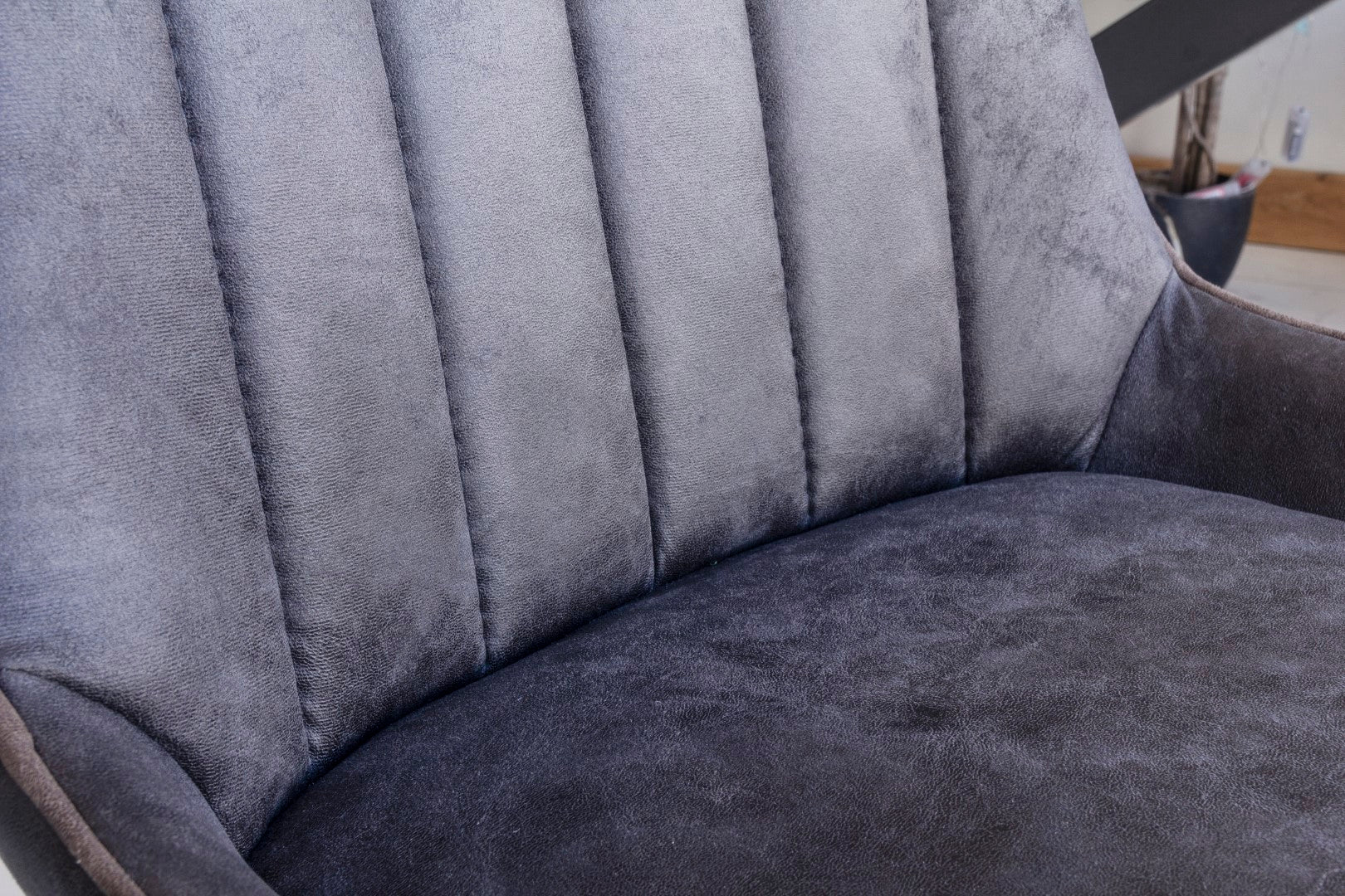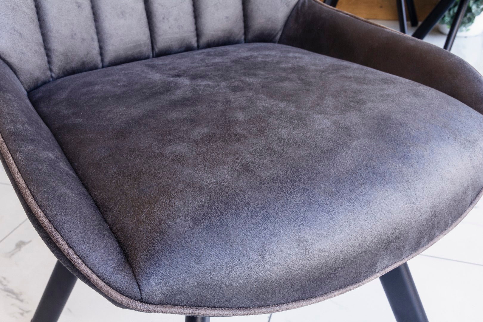A stunning high-end dining chair with beautiful vertical line detail to the back. Features deep, cushioned seating and back for extra comfort. Beautifully complemented with black powder-coated legs.