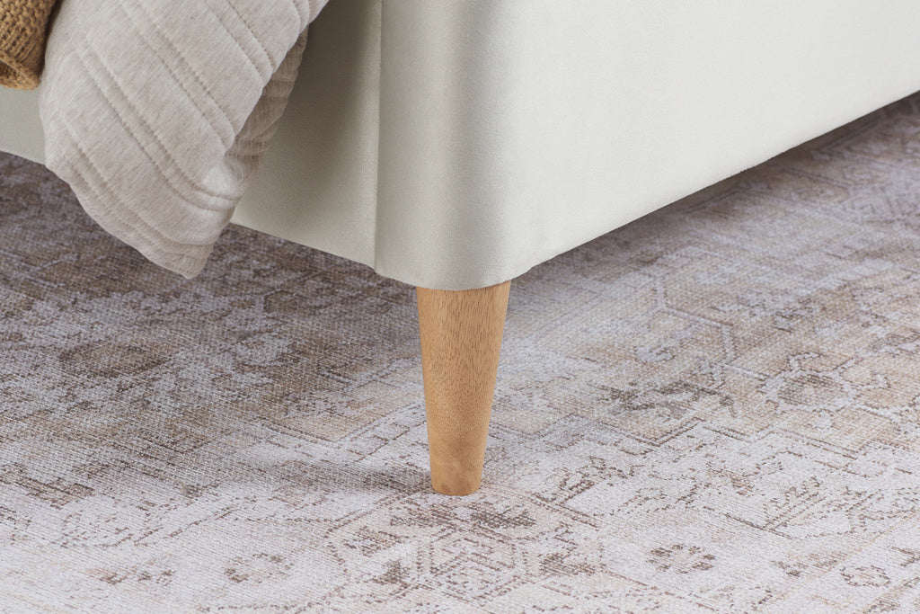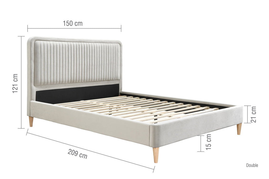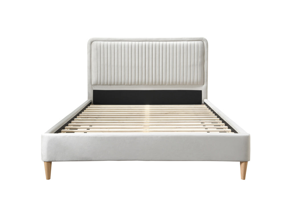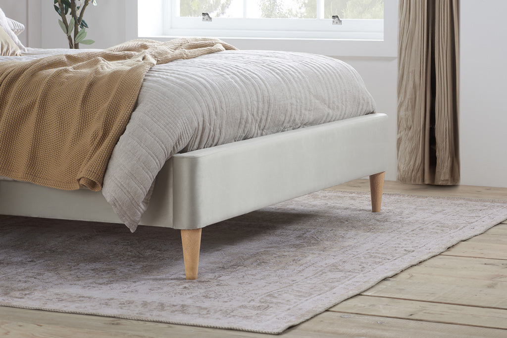 Standing on slender, tapered wooden legs, this bed frame evokes a sense of space and openness, making it an excellent choice for both minimalistic and ornately decorated bedrooms.