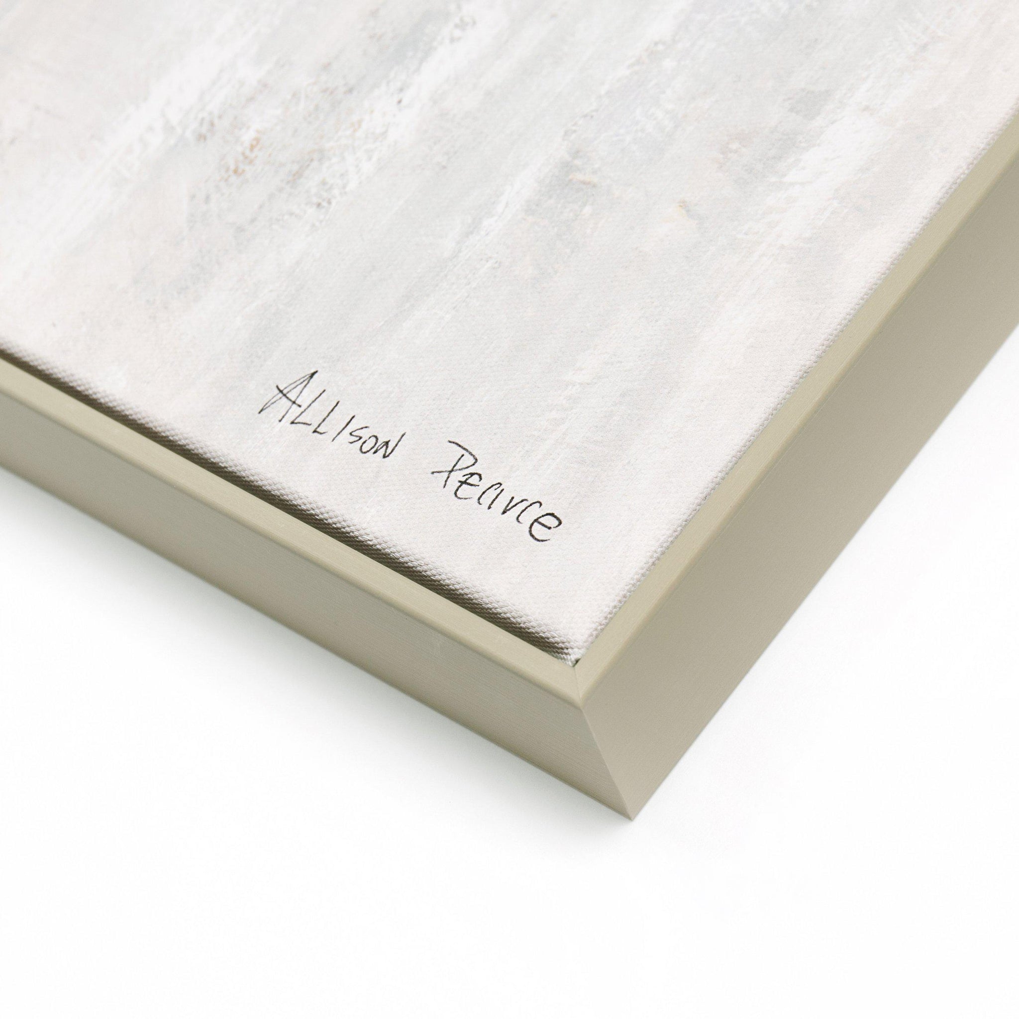 Symbol of fresh beginnings, love and passion - and of tranquillity too - Allison Pearce's tenderly rendered, blue-blossomed lilac tree's mirrored in shimmering waters as it melts into the morning sky. Finished in a warm grey frame.