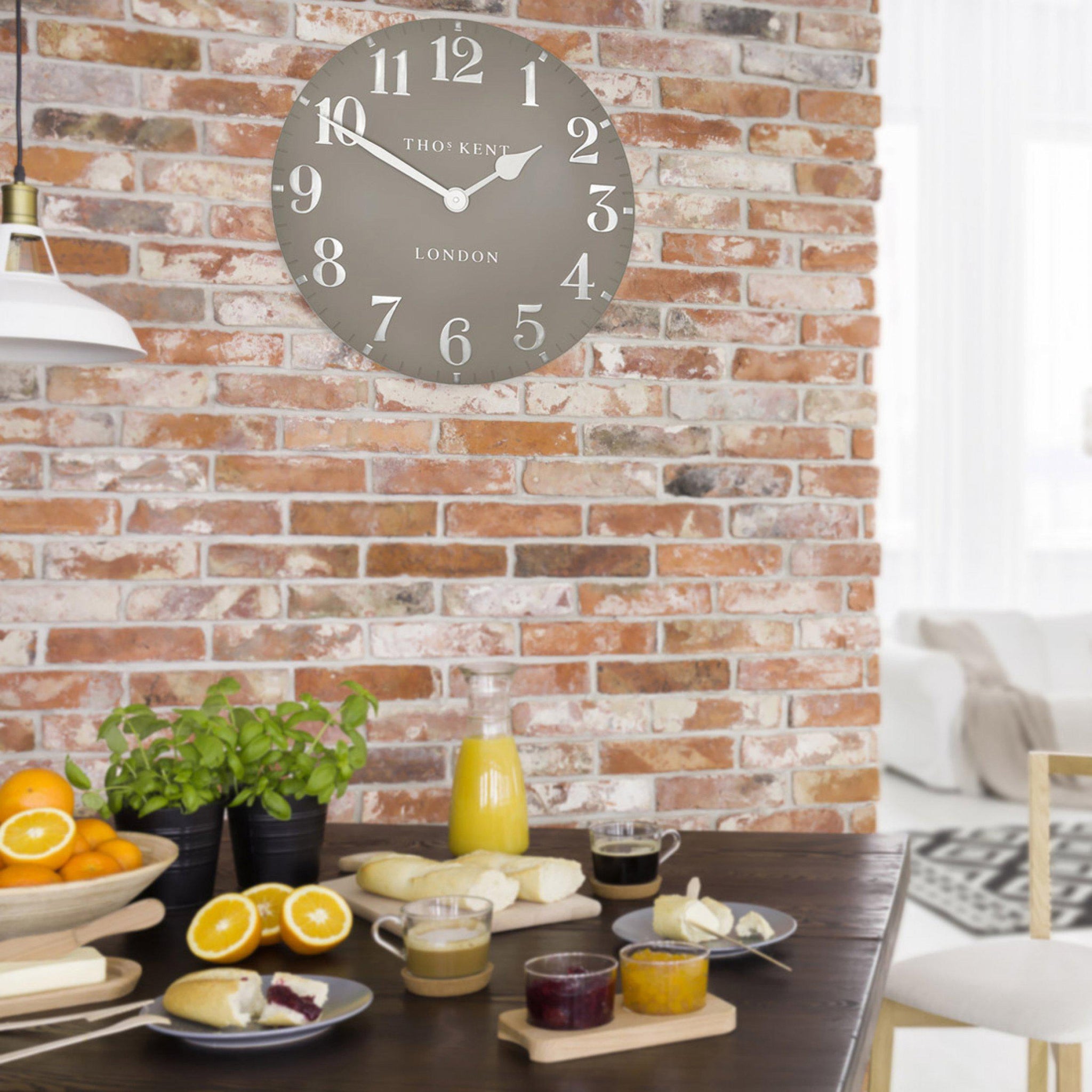 A distinct shade of mink captures the Arabic wall clock. Subtle notes of brown and grey collaborate to form a warm variation. This signature design has stood the test of time. Its versatility suits an array of interior spaces. A traditional timepiece with a charming styling. Around the convex, open-faced design, raised, contrasting hands and numerals give the wall clock great depth. The mink tone is only available in a 20-inch design.