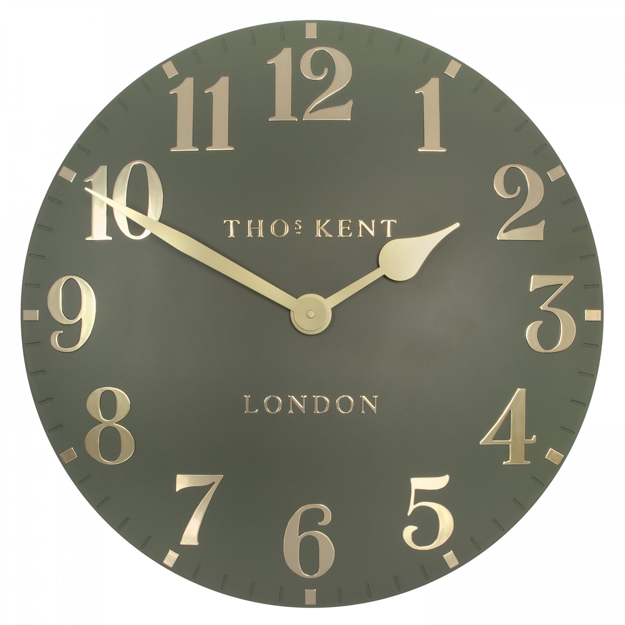 Introducing a deep shade of lichen green to the Arabic wall clock collection. Rich and organic tones of green are complemented by bright gold numerals, ticks and hands; adding a degree of glamour to our familiar curvaceous 20 inch wall clock dial. This new Arabic colour is exemplary modern design, steeped in British heritage.