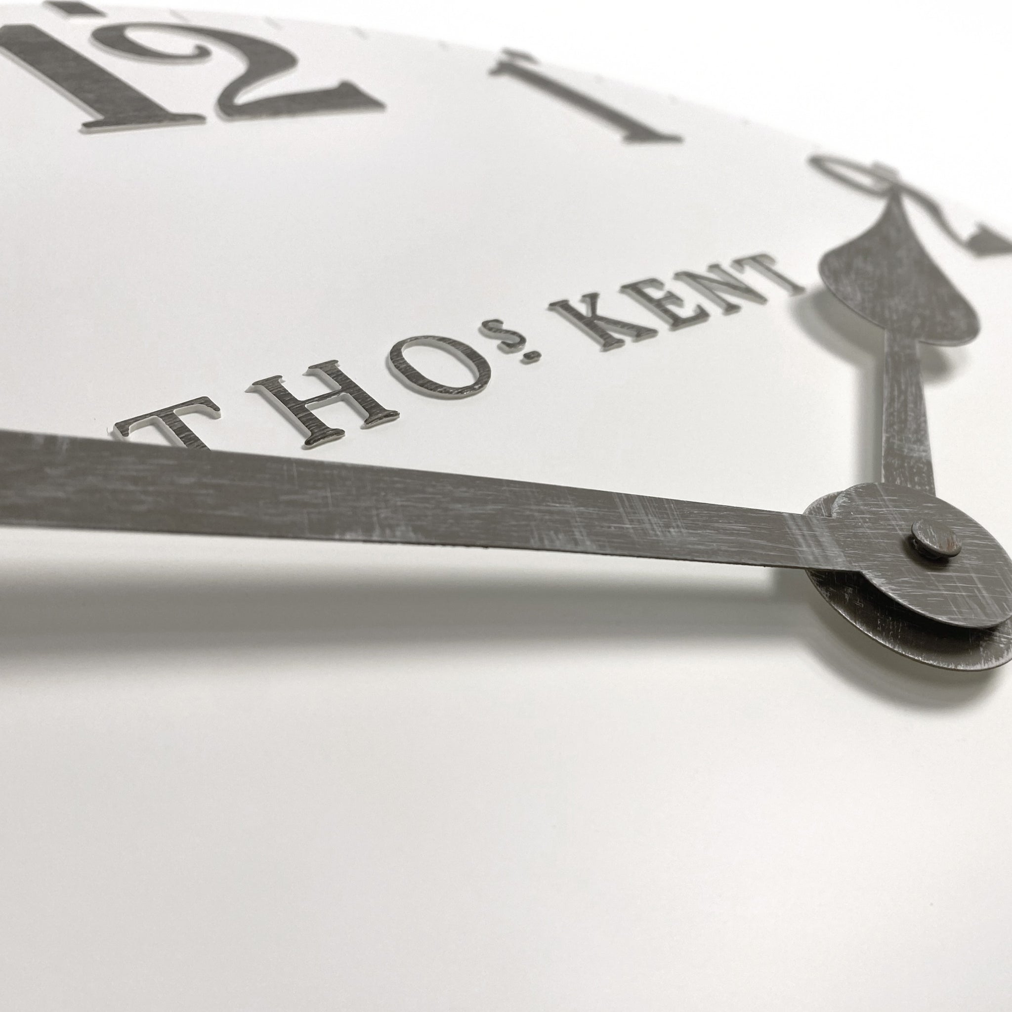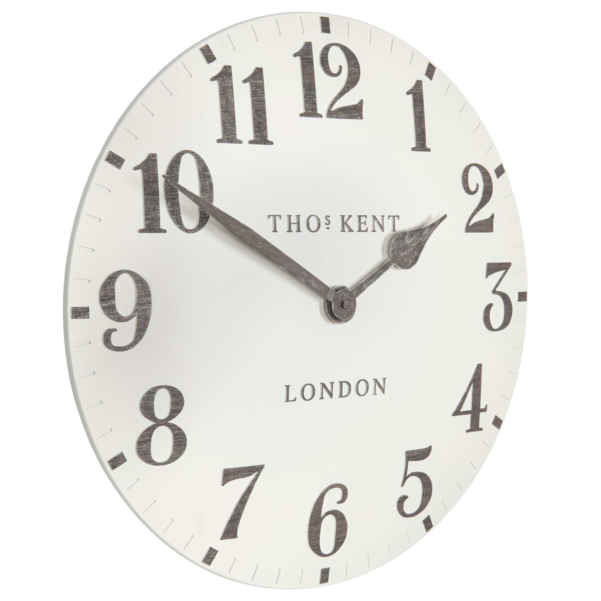 A light limestone tone sets the backdrop for the stunning Arabic numeral to sit upon. A classic open-faced wall clock with a heritage personality. The raised, contrasting numerals and hands hold a wood effect print; they sit beautifully around the impressive convex design.