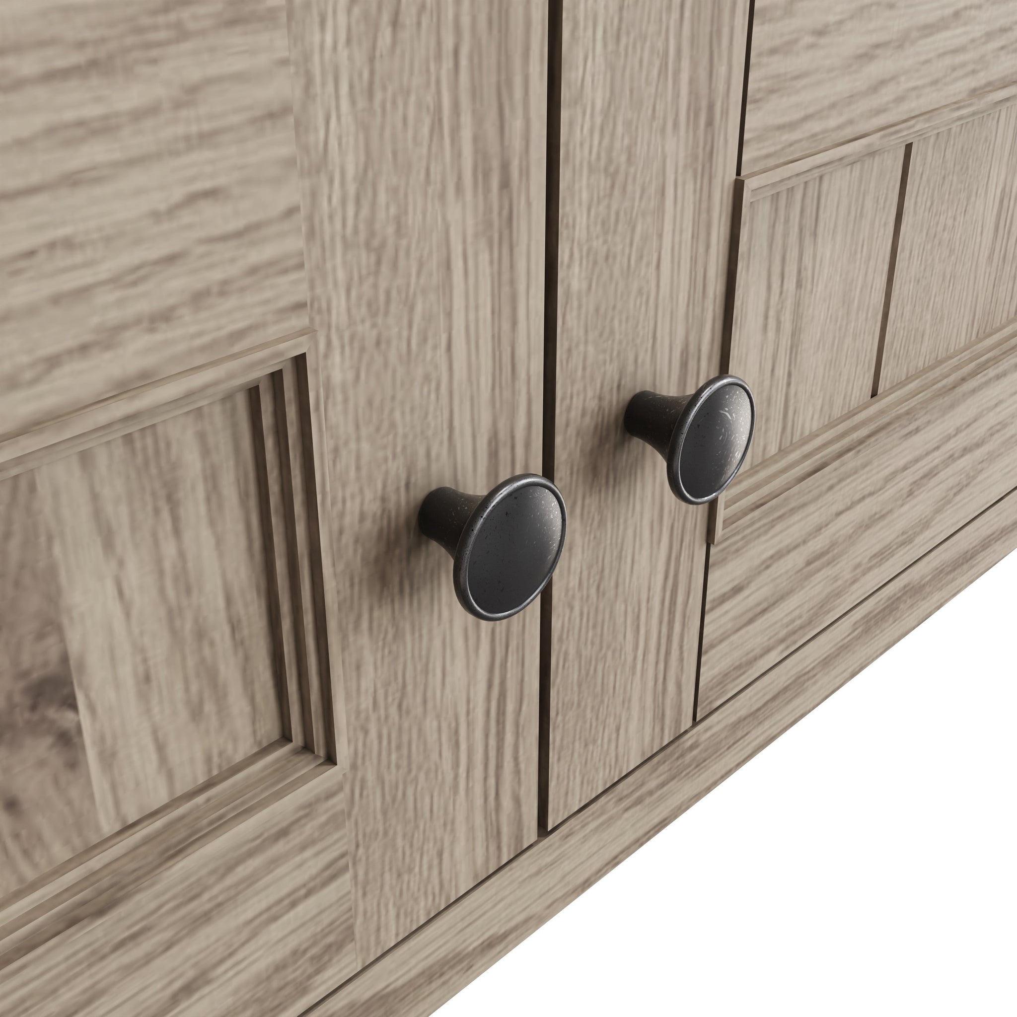 Cool neutral tones and sleek straight lines, the Suffolk Oak Collection brings a charming and grand traditional style that is set to complement any interior. Featuring an open compartment great for housing your devices and also a cupboard that is perfect for keeping your living room clutter free. Impressive quality runs through every detail of this range, from the solid grey oak design to the pewter handles.