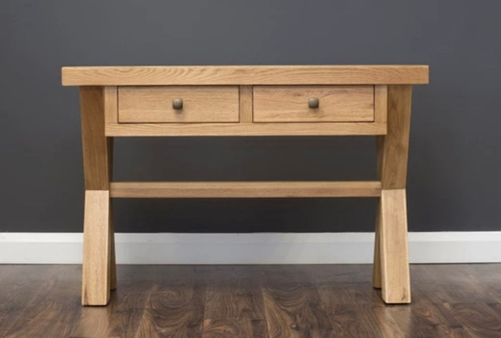 Created from Premium Oak it is chunky and therefore sturdy. With X detailing it makes this console table is both eye-catching and a standout addition to your home. The Oak X Console Table provides a beautiful storage solution within the range.
