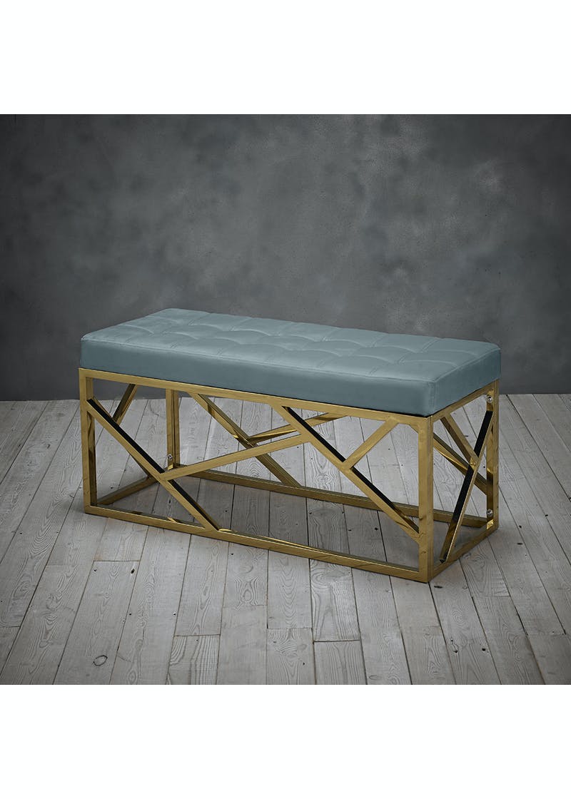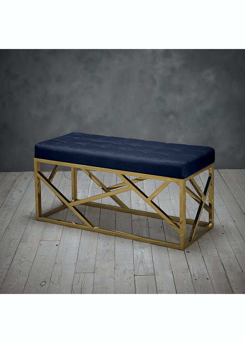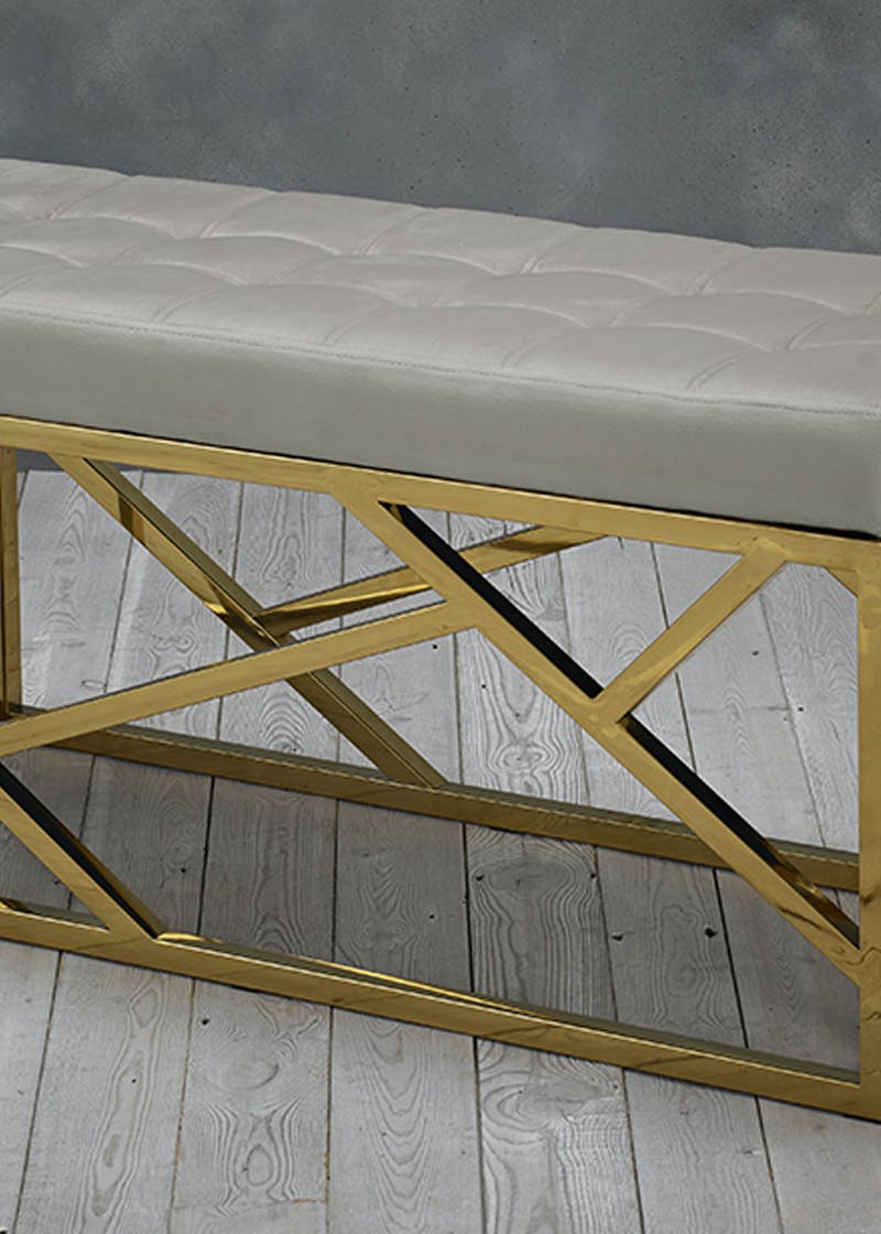 Our Regal bench comes in 5 colour options ( Blush, Green, Mink, Royal Blue), a soft upholstered seat pad resting on a gold geometric style frame. This bench will add a little vintage glamour to any home.